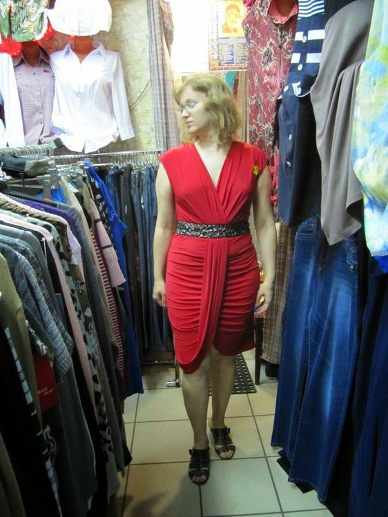 Потом в другом отделе девушка предложила померить совсем летний вариант (коктельного) платья, моя реакция была быстрой: - В топку такое платье.. Я его никогда не одену, еще этот цвет.. жуть..